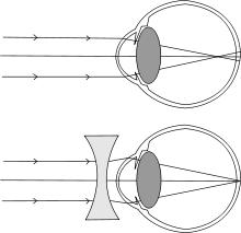 Mit einem streuenden Brillenglas (Minus- oder Konkavglas) in der Brille kann die Kurzsichtigkeit korrigiert werden.