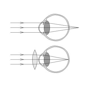 Bei Kurzsichtigkeit entsteht das Bild vor der Netzhaut - bei einer Weitsichtigkeit hinter der Netzhaut!
